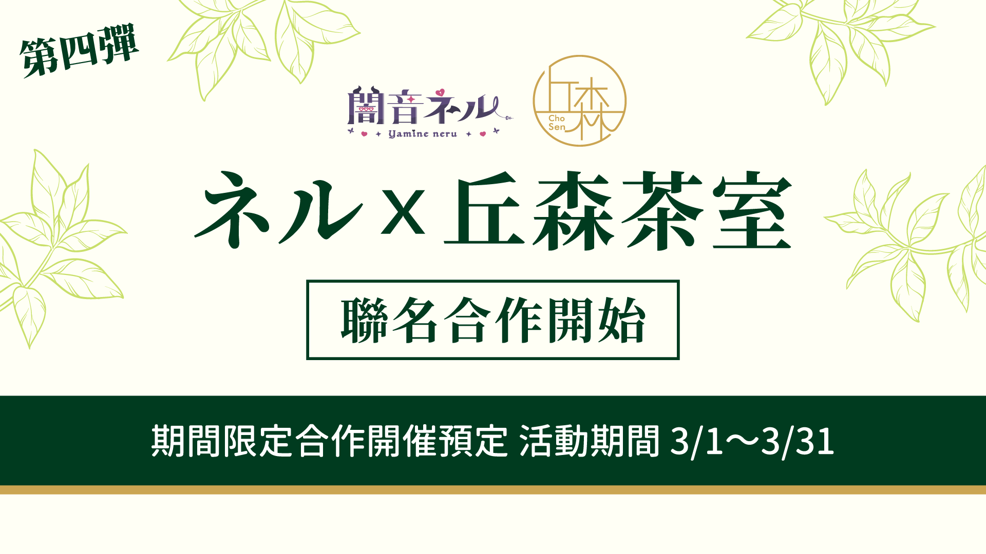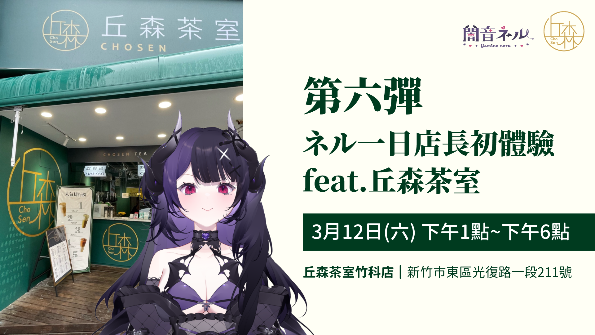 闇音ネル將與丘森茶室(https://www.facebook.com/chosentea.official)推出聯動活動,陪伴大家度過整個3月